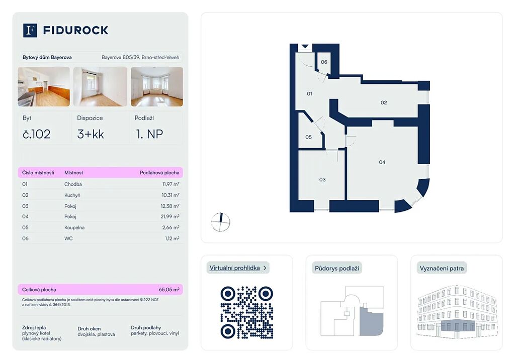 Nabízíme byt v jedné z nejatraktivnějších částí Brna – Veveří, v činžovním domě z 30. let, který právě prochází rozsáhlou modernizací. Jedná se o přímý prodej bez provize.