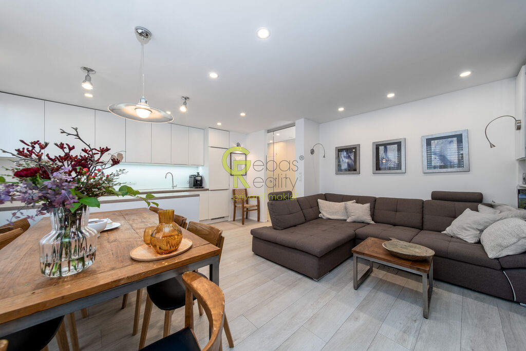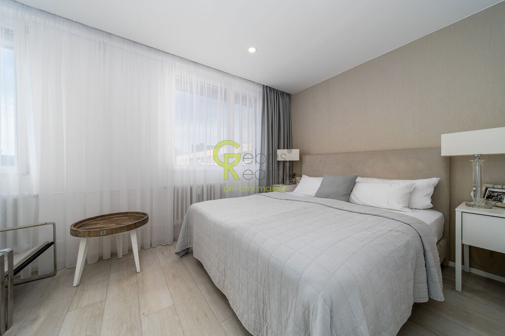 Ve výhradním zastoupení majitele si Vám k prodeji dovolujeme představit krásný, kompletně zrekonstruovaný byt 3+kk (původně 4+kk) o podlahové ploše 73 m², který se nachází v pátém nadzemním podlaží udržovaného panelového domu bez výtahu v ulici Horčičkova, v klidné části Prahy 11 – Háje. Byt prošel v letech 2017–2018 velmi kvalitní a designovou rekonstrukcí, při které byl kladen důraz na detail, funkčnost a nadčasovost. Bytový dům má pouze tři vchody a vlastní SVJ, novou střechu a kotelnu s tepelnými čerpadly, díky čemuž jsou zajištěny nízké provozní náklady a celkově vysoký komfort bydlení. Interiér bytu působí vzdušně a elegantně. Dominantou je prostorný obývací pokoj s kuchyňským koutem s velkorysou pracovní plochou, kde byla instalována kuchyňská linka vyrobená na míru, vybavená kvalitními spotřebiči, vinotékou a digestoří s odtahem do komína. V celém bytě jsou snížené podhledy s vestavěným osvětlením, vinylové podlahy, designové vypínače a zásuvky, včetně podlahových zásuvek v obývacím pokoji. Na velkých oknech jsou dřevěné rámy doplněné o hliníkové lamelové žaluzie značky Somfy s elektrickým ovládáním. V bytě jsou kompletně nové rozvody elektřiny, včetně třífázového připojení 380 V, přičemž celý byt je řešen výhradně na elektřinu. Koupelna je velmi prostorná a laděná do světlých, příjemných tónů. Nabízí pohodlnou vanu, toaletu a dostatek úložného prostoru. Pračka a sušička jsou šikovně vestavěny do skříně tak, aby nerušily celkový dojem a zachovaly čistou linii prostoru. Ložnice je světlá a klidná, vybavená na míru vyrobenou vestavěnou skříní, která nabízí rovněž dostatek úložného prostoru. Součástí bytu je také samostatná šatna řešená kompletně na míru s velkorysou kapacitou úložných ploch. V chodbě je instalováno noční LED osvětlení pro pohodlí i bezpečnost. Celý byt je výjimečně tichý díky kvalitnímu provedení izolací a dodatečnému zateplení mezi panelem a sádrokartonem. K bytu náleží sklep, který je fyzicky spojený ze dvou částí (v evidenci odpovídá podíl jedné poloviny). Byt se nachází v klidné lokalitě s výbornou dopravní dostupností a kompletní občanskou vybaveností. V blízkosti je stanice metra Háje (pouhé 2 minuty chůze), školy, školky, obchody, restaurace i oblíbený Milíčovský les s možností procházek a rekreace. Celkově se jedná o mimořádně povedenou nemovitost, která spojuje kvalitní rekonstrukci, moderní design a velmi příjemnou atmosféru. Byt je ve vynikajícím technickém stavu, připravený k okamžitému nastěhování bez nutnosti dalších investic. Pro další informace nebo prohlídku bytu nás kontaktujte, rádi se Vám budeme věnovat. (PENB - D)