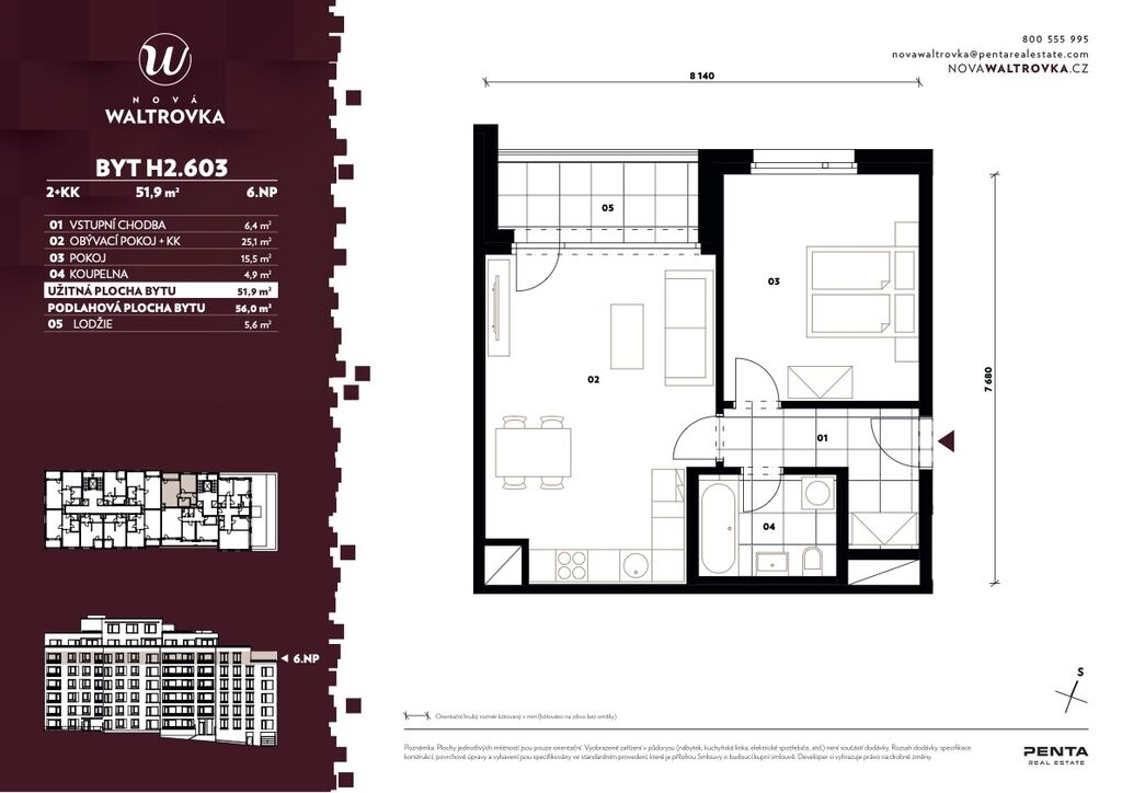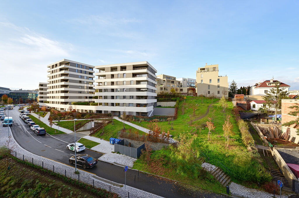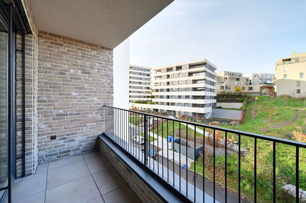 K dlouhodobému pronájmu zde nabízím byt 2+kk o velikosti 51,9 m² s lodžií 5,6 m², který se nachází v 6. nadzemním podlaží a jehož součástí je také garážové stání a zděný sklep, obojí již zahrnuto v ceně nájmu. Byt je orientovaný na západ do klidné části projektu a díky tomu nabízí dostatek denního světla po celý den i hezký výhled do okolní zástavby.