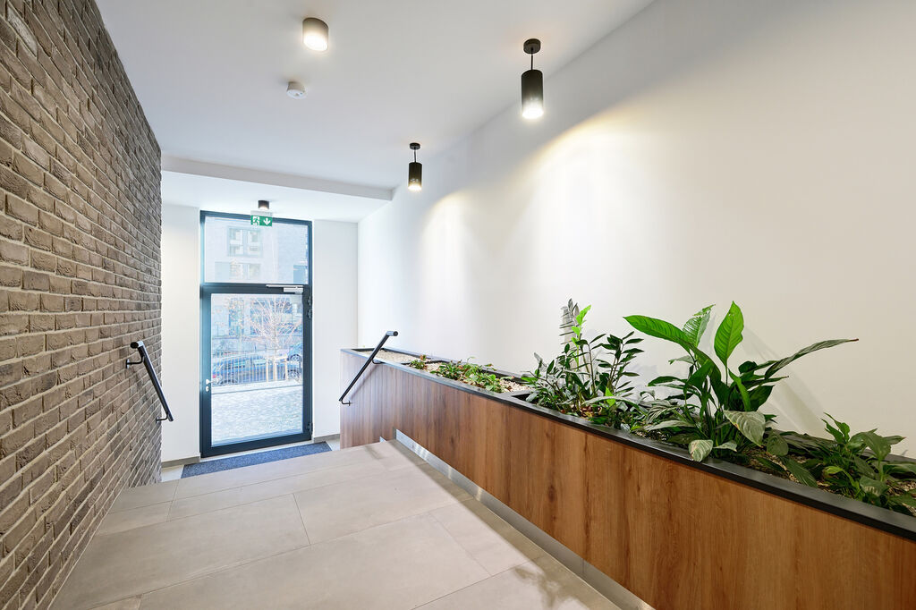 Standardy bytů v projektu Nová Waltrovka zahrnují dřevěné podlahy, hliníková okna s tepelně izolačním trojsklem a předokenní elektrické žaluzie. Dům spadá do energetické třídy B, což odpovídá úspornému a modernímu standardu bydlení.
