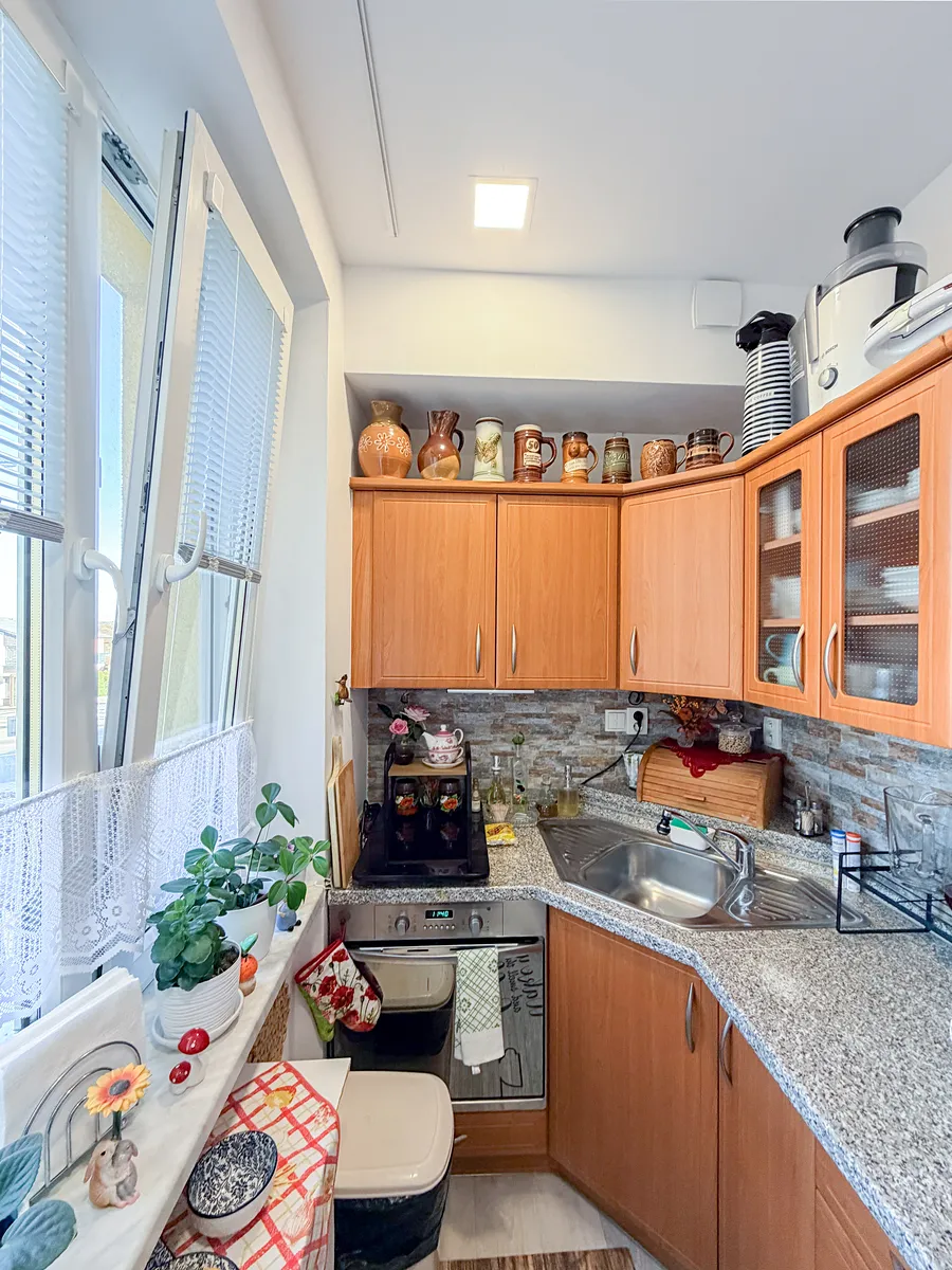 Byt je situovaný v 1. NP (zvýšené přízemí) z celkových 4 pater a má z jedné strany bezbariérový vstup, což zajišťuje pohodlný přístup i vyšší komfort bydlení. Jednotka prošla před dvěma lety částečnou rekonstrukcí – nové rozvody elektřiny, SDK podhledy s osvětlením, nové linoleum a stupačky. Díky tomu je byt okamžitě obyvatelný bez nutnosti dalších investic.