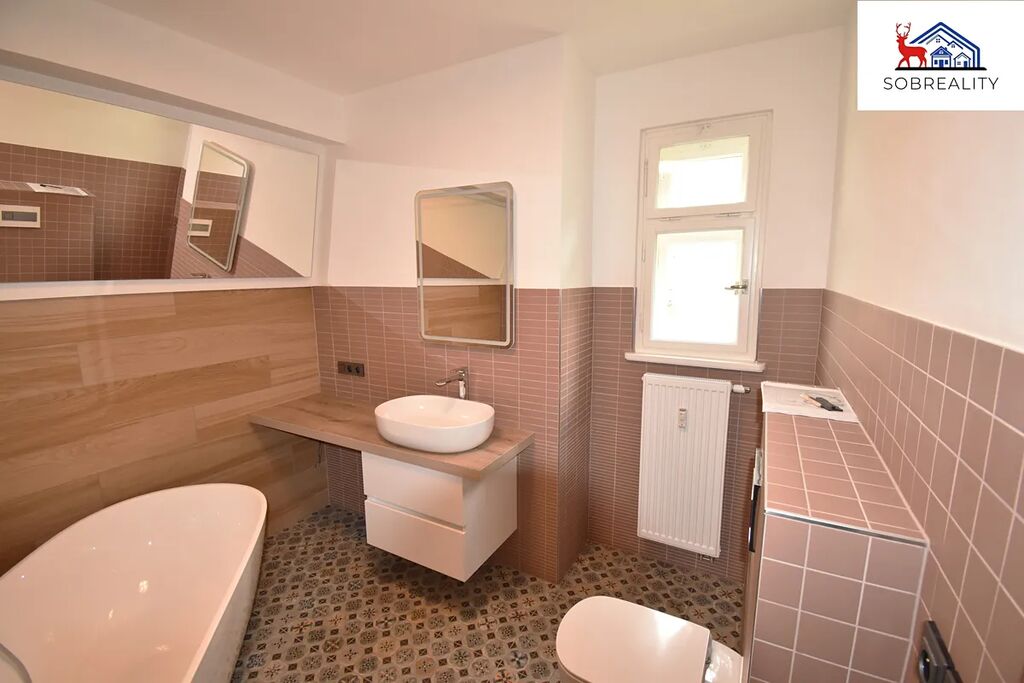 Pronájem krásného bytu ve vile Flora o dispozici 1+1 v OV o výměře cca 46 m2. V jedné z nejlepších a nejvyhledávanějších lokalit města Teplice ul. Poštovní. Byt prošel kompletní rekonstrukci a doposud v něm nikdo ještě nebydlel. A je situován ve 3. nadzemním podlaží (2. patro). Tento byt se skládá z obývacího pokoje cca 26 m2 a součástí obývacího pokoje je i vestavěná šatna cca 2,3 m2, kuchyně cca 3,3 m2, koupelny včetně toalety cca 7 m2, chodby (předsíně) cca 7 m2. Vytápění bytu a ohřev teplé vody je zajištěn centrálním plynovým kotlem. V domě je také instalována plošina pro vozíčkáře. Veškerá občanská vybavenost v dosahu. Byt je k dispozici ihned. A je maximálně pro dvě osoby.