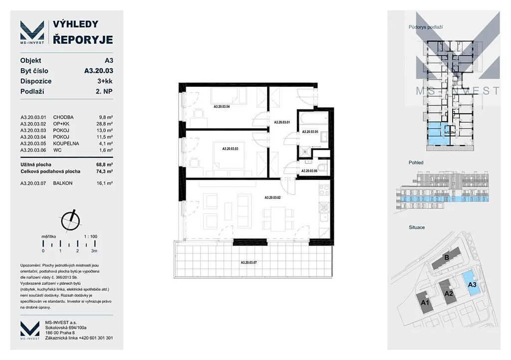 Prodej bytu 3+kk, Praha - Řeporyje, Jáchymovská, 74 m2 (ID: 2734697)