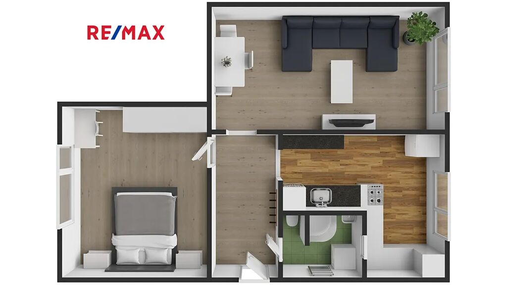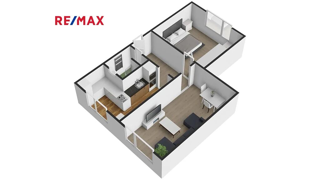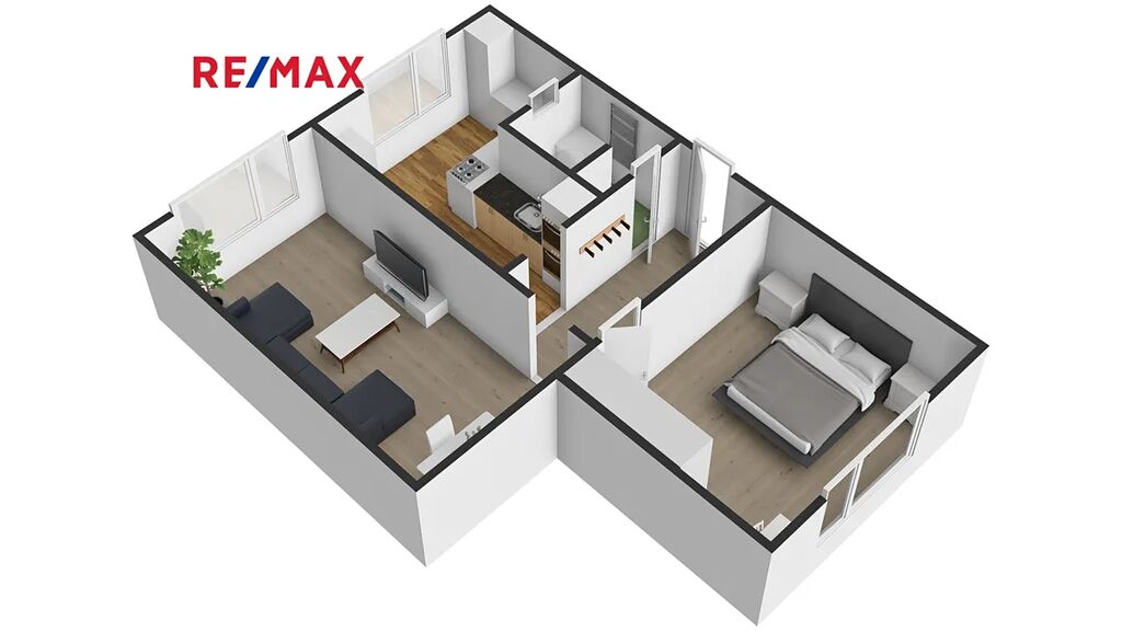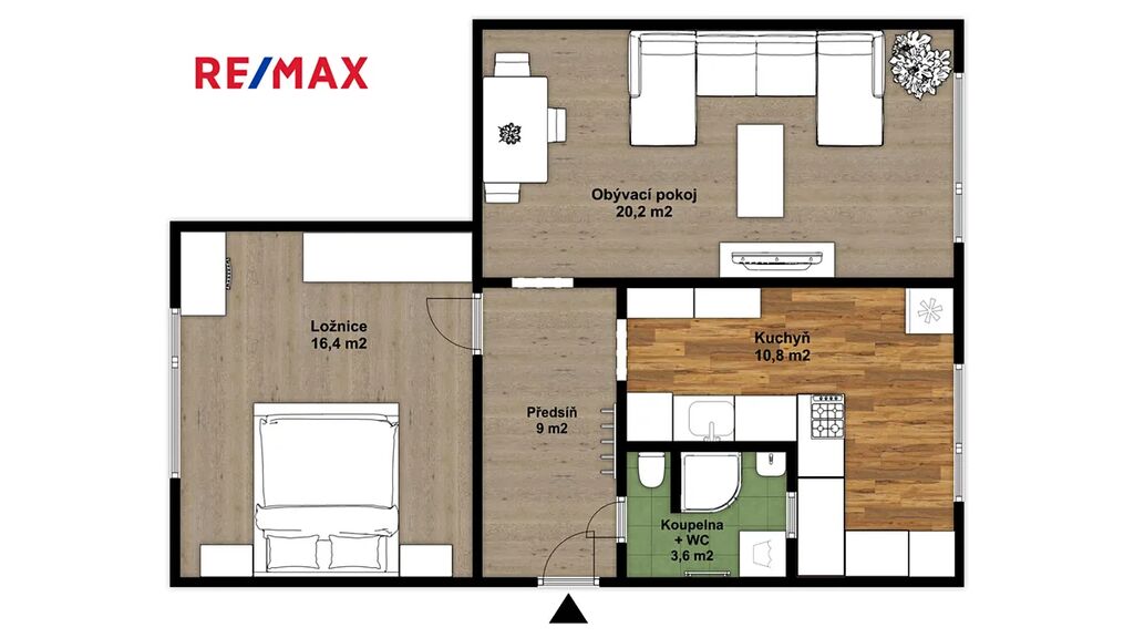 Orientace místností: kuchyně, obývací pokoj – jihovýchod, ložnice – severozápad.