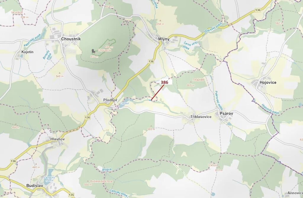 Vodní plocha o výměře 953 m2, parcelní číslo 386, podíl 1/1, katastrální území Tříklasovice, obec Psárov, obec s rozšířenou působností Tábor, okres Tábor, Jihočeský kraj.