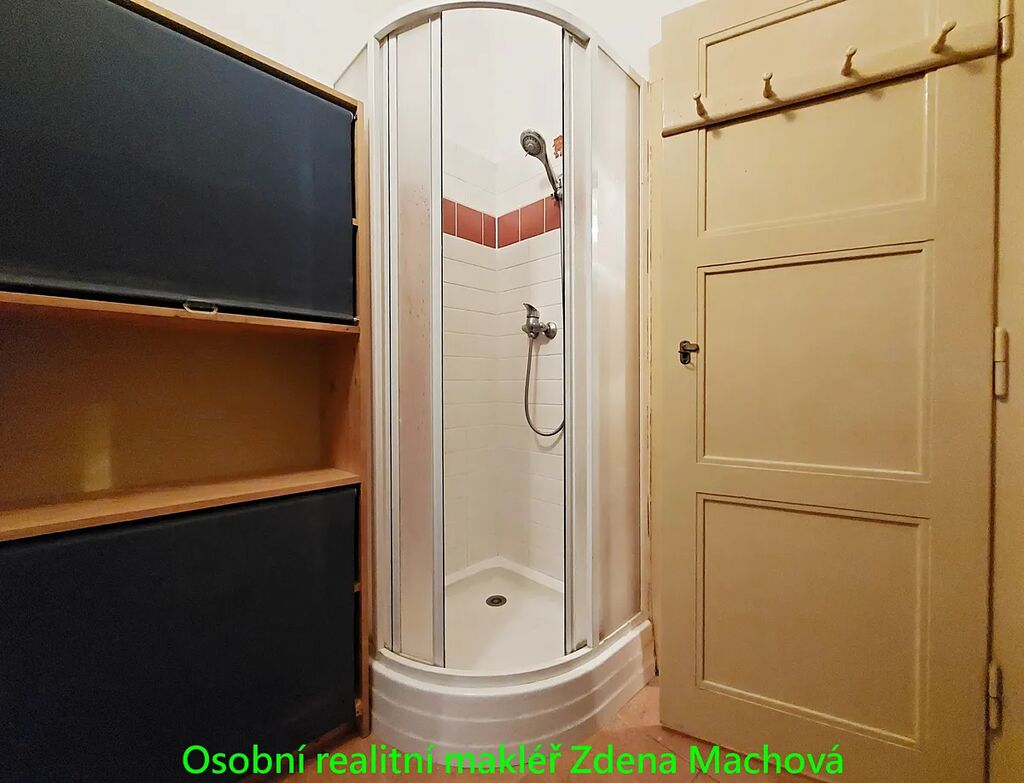 Koupelna je řešena sprchovým koutem je situována v malé vstupní předsíni, kde se nachází také botník. V předsíni je i vchod na samostatné WC s oknem do světlíku. Podlahu tvoří lino a dlažba. Vytápění je řešeno plynovými WAW. K bytu náleží sklep, který je zahrnut v ceně nájmu.