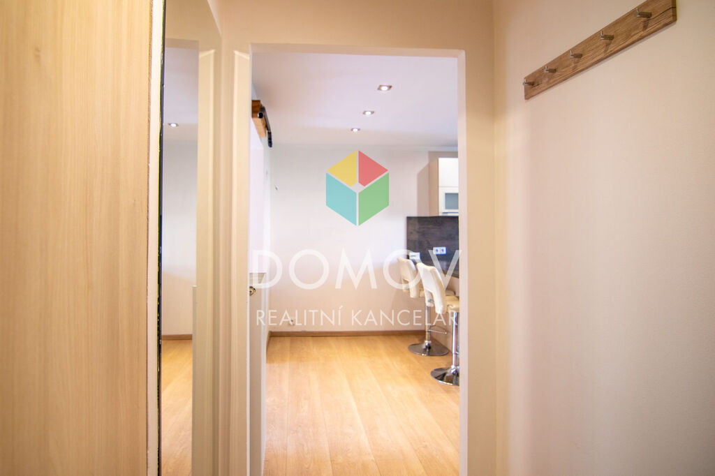 Dispoziční řešení : prostorná kuchyně s oknem je zařízena moderní kuchyňskou linkou s vestavěnými spotřebiči. Na kuchyň volně navazuje prostorný obývací pokoj se vstupem na malý balkon, ložnice s oknem je přístupná ze vstupní chodby, koupelna s oknem je zařízena sprchovým koutem a WC, vstupní chodba.