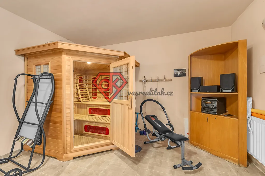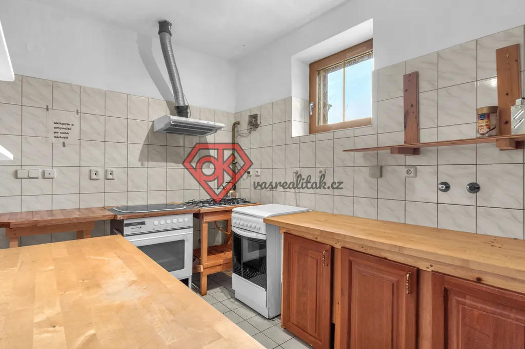 1.PP: společenská místnost s krbem a barem, kuchyň, kotelna, prádelna, sklad, příprava na bytovou jednotku 2+kk (nyní sklad a dílna)