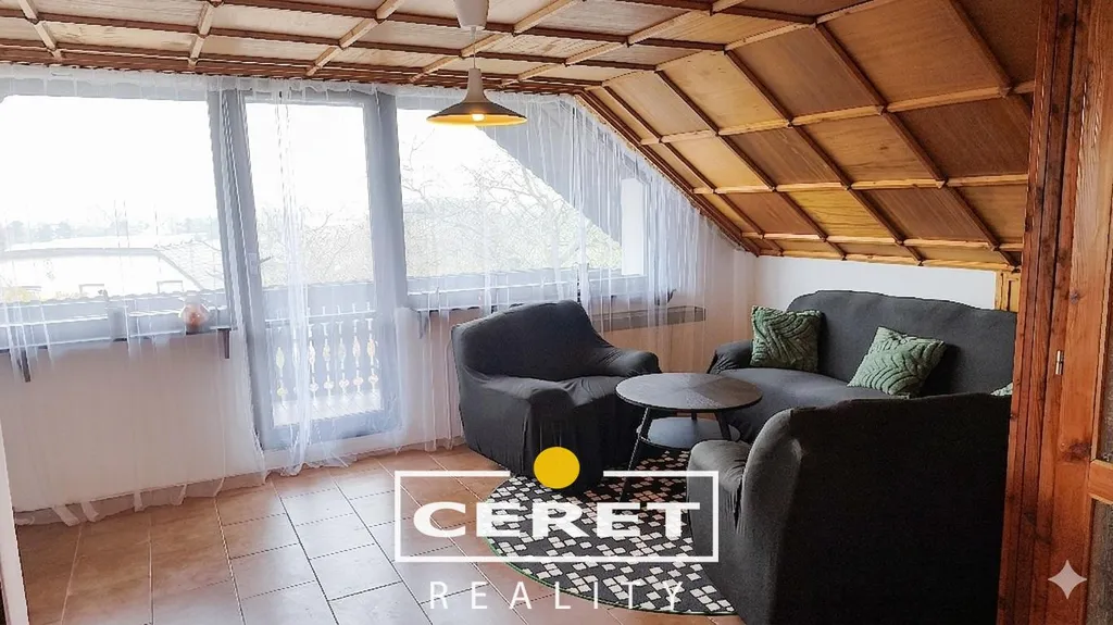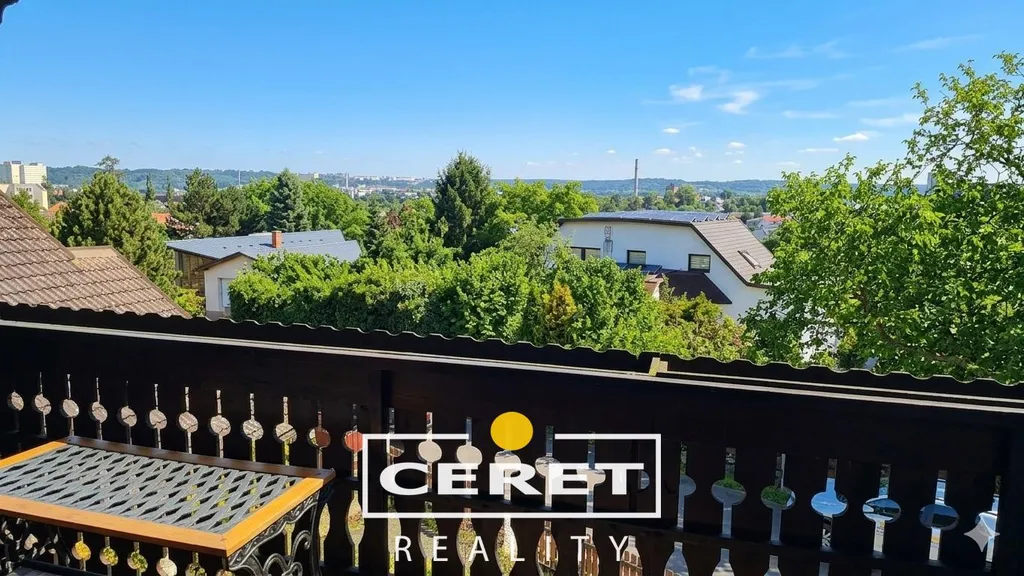 Disponuje posezením pod pergolami, terasami (z toho jedna uzavřená a vytápěná) a na balkonech s nádherným výhledem. Dále garáží s dílnou a sklepem v suterénu, parkovacím místem, skleníkem a zahradou se samostatnou chatkou.