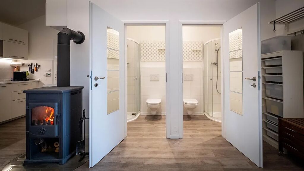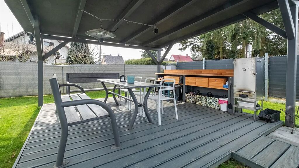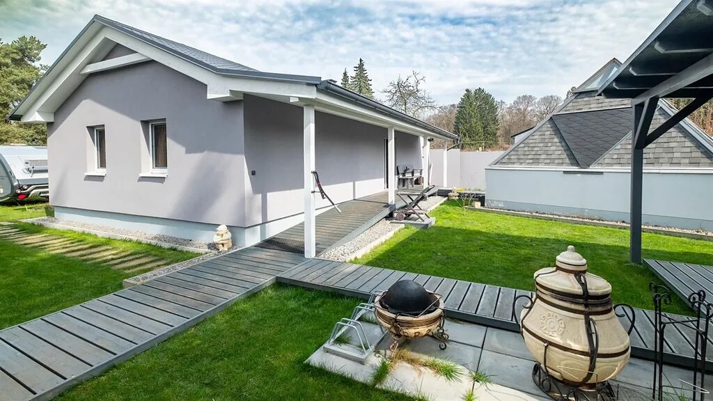 Rekreační objekt, který zde máme na prodej, má dispozici 4+KK s velkou terasou a je postavený na pozemku o celkové ploše 792 m2. Dům je prakticky nový, takže je ihned obyvatelný bez investic a samozřejmě energeticky nenáročný. Celková vnitřní plocha je 79 m2 + máyská pyramida o ploše 23m2. Centrální místností je obývací pokoj, který je přímo propojen s kuchyňským koutem, kde máte plnohodnotně vybavenou a prostornou kuchyňskou linku. Dále zde máte tři ložnice, které jsou vybaveny nábytkem na míru tak, aby byly efektivně využity a poskytovaly dostatek úložného prostoru pro oblečení a další potřebné. Koupelny jsou tu dokonce dvě obě se sprchou, umyvadlem i WC. Saunu je možno využít jako Finskou i jako Ruskou. Objekt byl doposud využíván pro psychoterapeutské víkendy se zaměřením na odpočinek, relax a pohodu. Jistě oceníte také dřevěnou pergolu, s venkovní kuchyní, kde můžete pohodlně grilovat či udit. Dostatek vody je řešen dvěma vlastními studnami, voda má díky úpravně vody kvalitu kojenecké vody. O tepelnou pohodu se stará podlahové elektrické vytápění infratopnou fólií, které je navíc ovládané přes aplikaci v mobilním telefonu, takže si jednotlivé místnosti lze zcela regulovat a ovládat odkudkoliv, stejně jako elektronické zabezpečení domu. Topení je doplněno kamny na dřevo, které nejen že vytopí celý objekt, ale dodají také pocitovou pohodu. Kanalizace je řešena jímkou. Na pozemku máte ještě dřevěnou skladovací místnost a sklad dřeva.