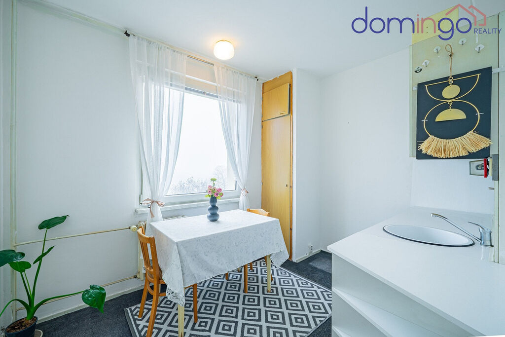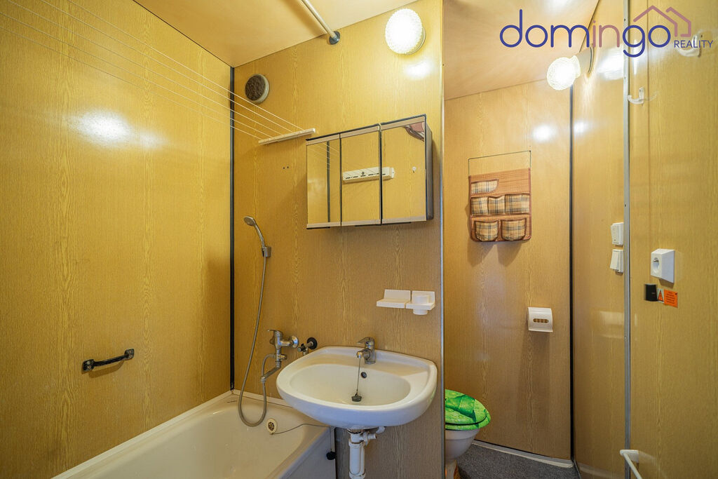 Dispozice 1+1 dává bytu přirozenou jednoduchost. Kuchyň i obytný pokoj jsou v původním stavu, což vám umožní navrhnout si je do posledního detailu. Koupelna s umakartovým jádrem je překvapivě zachovalá a připravená jak okamžitému používání, tak k postupné modernizaci.