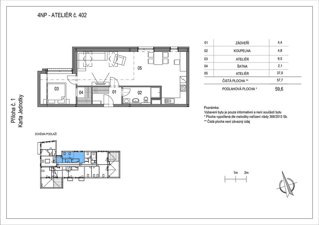 Čeká Vás moderní dispozice jednotky s velkým otevřeným prostorem, bez drahocenné plochy bytu vynaložené na zbytečné předsíně. Ateliér 402 totiž účelně využije každý z téměř 60 m².