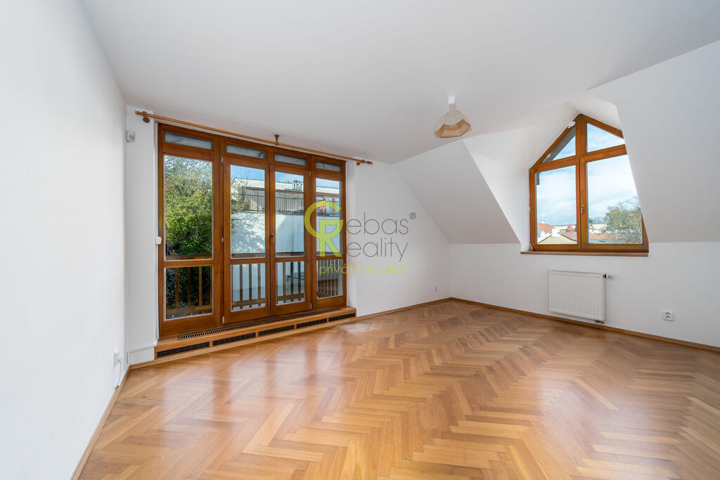 Ve výhradním zastoupení majitele si Vám dovolujeme nabídnout k prodeji krásný, prostorný a světlý mezonetový byt o dispozici 3+kk a celkové užitné ploše 108 m² + plocha teras 12 m2, který se nachází přes dvě podlaží menšího bytového domu v klidné a vyhledávané lokalitě Prahy 4 – Michle, v na konci slepé ulice Ve Vilách. Dům je situován ve svahu a byt díky tomu nabízí příjemný výhled do okolní vilové čtvrti a na zeleň. Spodní patro tvoří prostorný obývací pokoj s moderní kuchyňskou linkou na míru vybavenou vestavnými spotřebiči, jídelní částí a krbovými kamny, které navozují útulnou atmosféru domova. Z obývacího prostoru je vstup na terasu s možností posezení. V této úrovni se nachází také koupelna se sprchovým koutem a toaletou. V horním patře jsou dvě samostatné ložnice, z nichž jedna má přímý vstup na druhou terasu s výhledem do zeleně. Součet obou teras činí 12 m² a obě nabízejí příjemný prostor pro odpočinek nebo menší zahrádku v květináčích. Ve stejném patře se nachází také prostorná koupelna s vanou, sprchovým koutem, dvěma umyvadly a toaletou. Interiér bytu je vybaven kvalitními dřevěnými parketami se starožitnými prvky v dolní části bytové jednotky, dřevěnými okny i dveřmi v jednotném přírodním odstínu, které harmonicky ladí s moderní kuchyní a celkovým stylem bytu. K bytu náleží sklepní kóje a garážové stání přímo v domě, které je zahrnuto v ceně. Vyytápění v domě. za pomoci kamen na topný olej. Dům se nachází v tiché rezidenční části se spoustou zeleně a přitom s výbornou dopravní dostupností – zastávky MHD jsou v docházkové vzdálenosti, stanice metra C – Pankrác nebo Budějovická jsou jen několik minut jízdy. V okolí je kompletní občanská vybavenost, školy, školky, obchody, restaurace, kavárny i sportoviště. Nechybí ani blízkost přírody, například parku Bohdalec nebo Kunratického lesa. Tento byt představuje ideální volbu pro ty, kteří hledají klidné, komfortní a reprezentativní bydlení v širším centru Prahy s příjemnou atmosférou a výhledem. Pro další informace nebo prohlídku bytu nás kontaktujte, rádi se Vám budeme věnovat. (PENB - D)