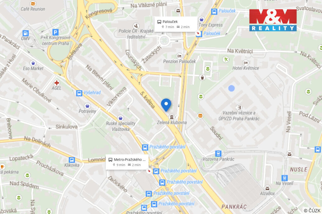 Byt se nachází v blízkosti metra Pražského povstání a tramvajové zastávky, což zajišťuje pohodlné spojení do centra i do dalších částí Prahy. V okolí najdete také moderní business centrum Pankrác a kompletní občanskou vybavenost.