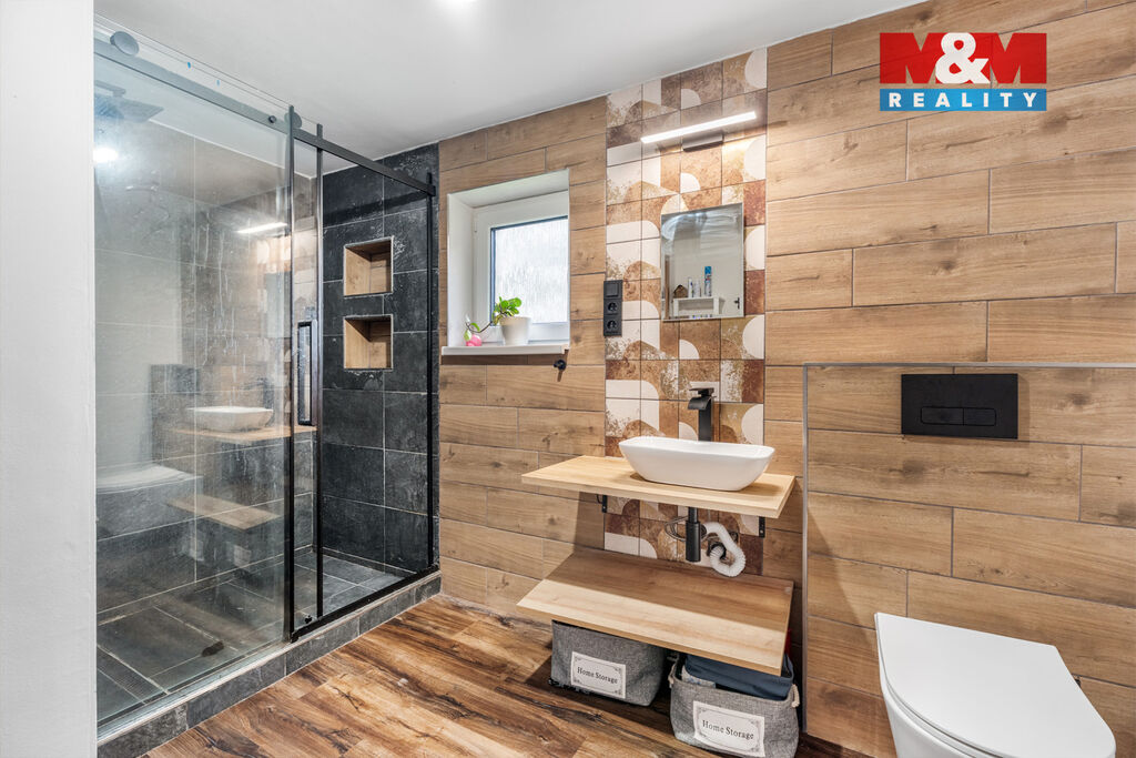 V domě proběhla kompletní rekonstrukce – nové rozvody elektřiny a vody, podlahové topení, nový kotel na pelety, trámy, traverzy, schodiště i podlahy. Ohřev vody zajišťuje bojler, odpad je sveden do septiku, v kuchyni je řešen přepadem do zahrady. Sklep je zasypaný. V patře zbývá dokončit jednu místnost, která je připravená pro vybudování další koupelny.