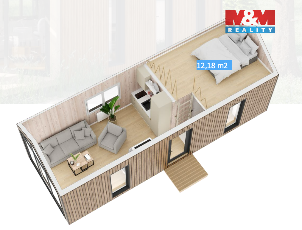 Nabízíme k prodeji jedinečnou chatu na klíč ve Vámi vybrané lokalitě. Tento domek je ideální volbou pro milovníky přírody, kteří touží po úniku z městského shonu bez kompromisů na pohodlí a stylu. Chata o podlahové ploše 29,58 m² nabízí skvělé zázemí pro rekreační pobyty, a to díky své ocelové konstrukci a modernímu vybavení. Prostorná obývací část s kuchyní poskytují dostatek prostoru pro odpočinek i aktivní relaxaci. Ložnice a navíc spací patro umožní komfort pro celou rodinu. Chata je ideální pro glamping či jako rekreační objekt v malebném prostředí. Stav nemovitosti je velmi dobrý, a proto je připravena k okamžitému užívání. Nechte se okouzlit spojením komfortu a přírody! S výhodným financováním pomůžeme. Realizace do 6 měsíců od vyřízení stavebního povolení, které též dokážeme zajistit. Prohlídka je možná po domluvě s makléřem v showroomu v Rychnově nad Kněžnou.