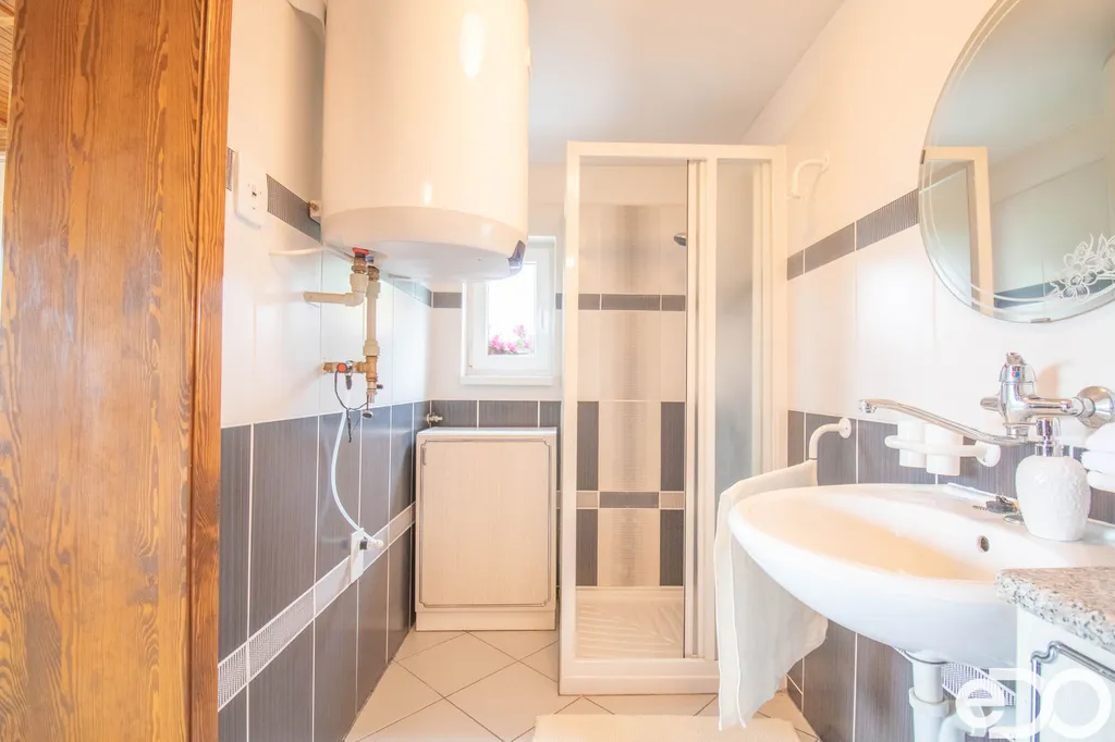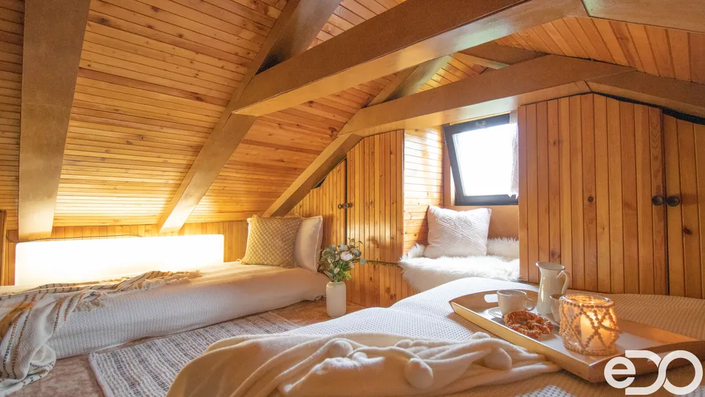 Tato zděná chata nabízí hlavní místnost s kuchyňskou linkou, nově zrekonstruovanou prostornou koupelnu a samostatnou toaletu. Dále se lze z hlavní místnosti dostat po vysouvajících schodech do střešního prostoru, kde se pohodlně vyspí minimálně čtyři osoby. Před vchodem do chaty je terasa, ze které je krásný výhled na celý pozemek a na okolí Mladé Boleslavi. Celá chata je podsklepená a prostor terasy vybízí přistavět další místnost, nebo zimní zahradu.