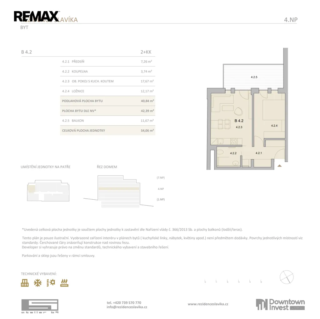 Exkluzivně Vám nabízíme byt 2+KK pod označením B 4.2. s terasou do vnitrobloku , hezkým výhledem na panorama města Brna s možností dokoupení krytého parkovacího stání v prvním podzemním podlaží.