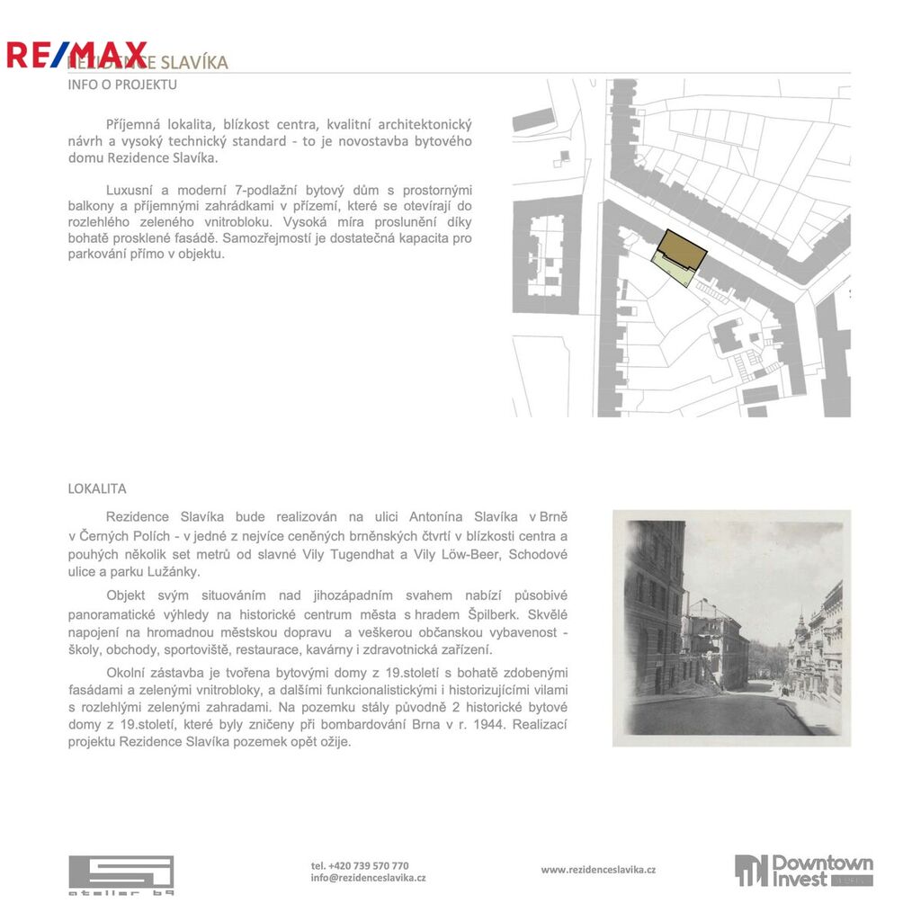 Novostavba moderního bytového domu Rezidence Slavíka, která vznikne v ceněné Brněnské čtvrti Černá Pole, na dohled od slavné vily Tugendhat, nabídne luxusní bydlení v centru města s krásným výhledem na Brněnské panorama s hradem Špilberk.