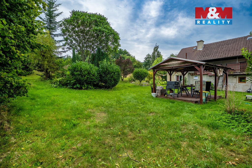 Na pozemku se nachází dvě garáže a studna – dům nebude po prodeji napojen na vodovod, ale studna umožňuje zprovoznění vlastní vody nebo se můžete zpětně připojit na veřejný vodovod. Terasa potřebuje opravu, nabízí však krásný výhled na okolní přírodu.
