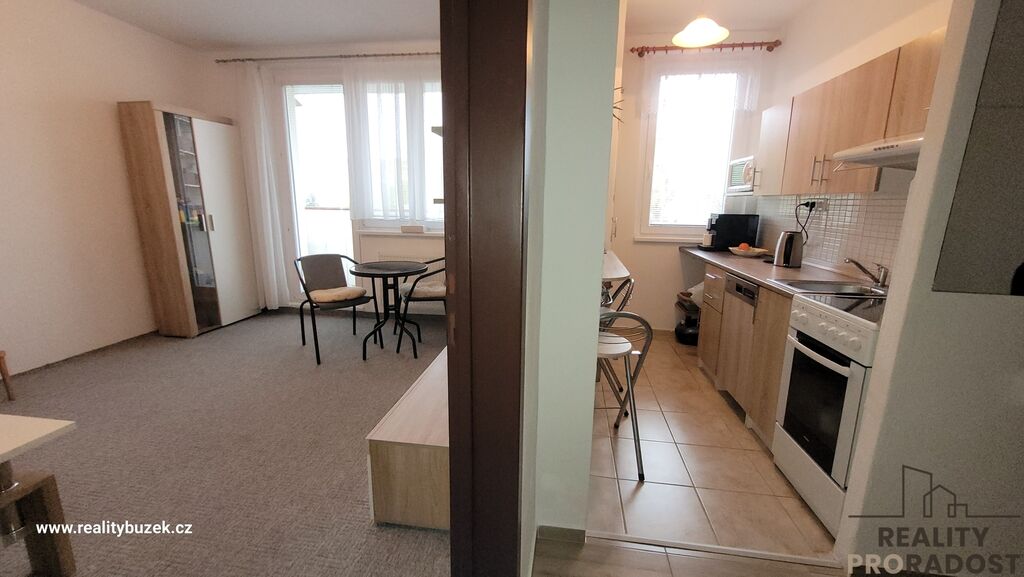 Byt má prostornou lodžii s nádherným výhledem na Hradisko.