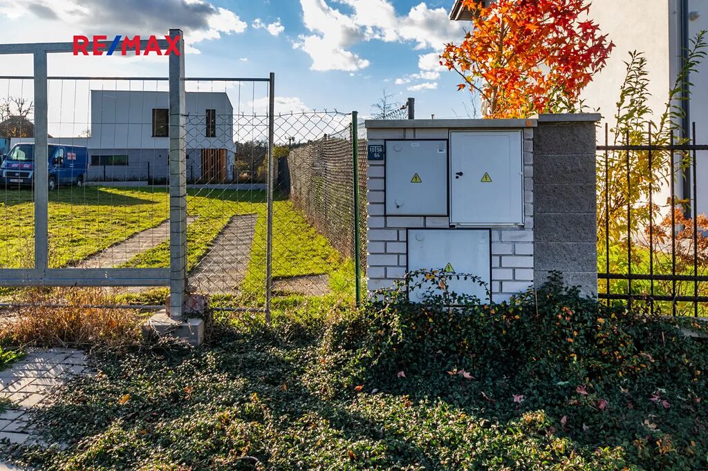 Pozemek je kompletně zasíťovaný – elektřina, voda i kanalizace již zavedeny.