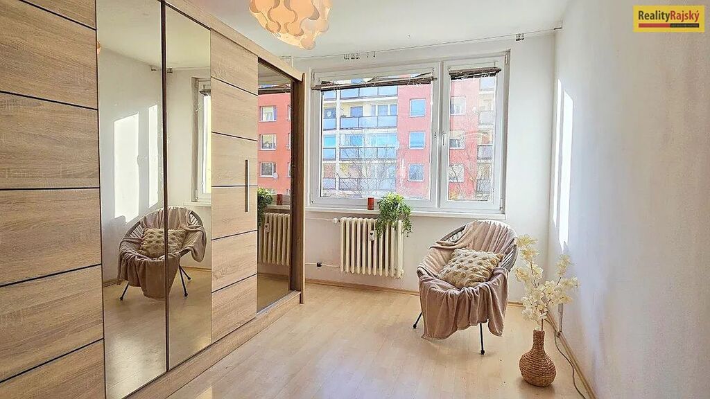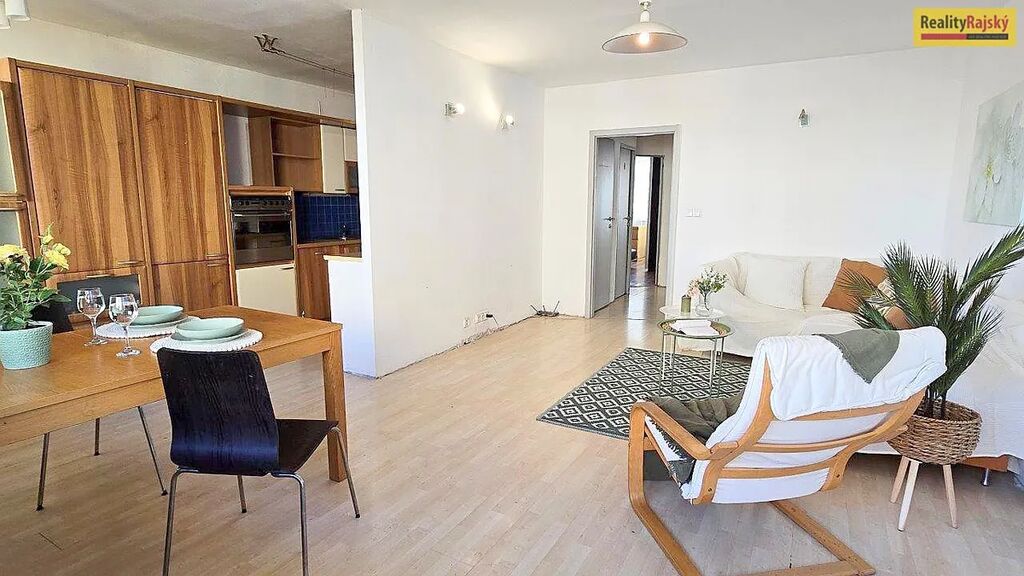 Obývací pokoj je opticky propojen s navazující kuchyní a je zde přístup na prostornou lodžii. Pokoje jsou samostatné, koupelna je stavebně rozšířena. Součástí bytu je i praktická komora.