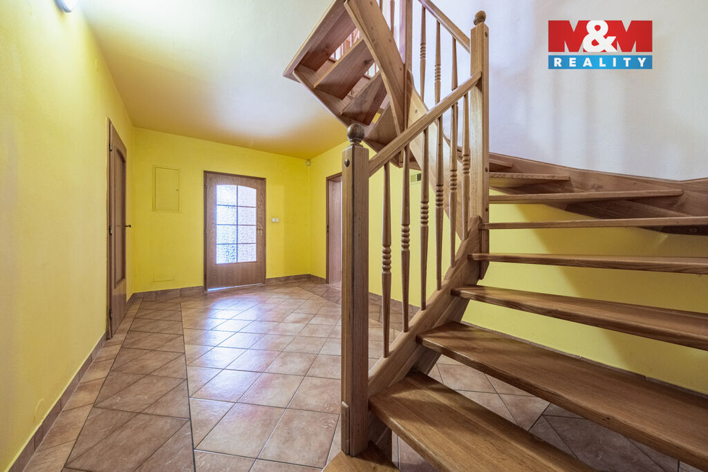 prostorná vstupní chodba a hala se schodištěm z masivního dřeva,
