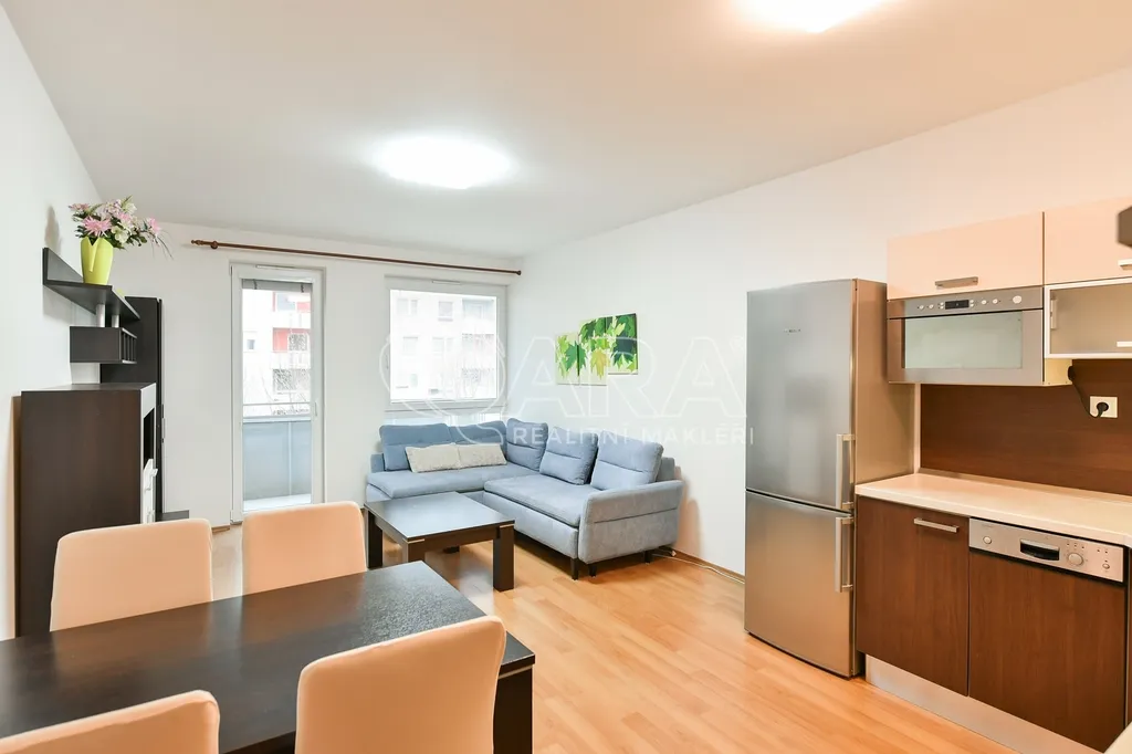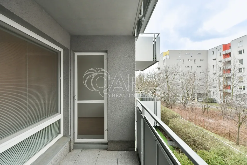 Nabídka pronájmu částečně zařízeného bytu o dispozici 3+kk s lodžií, balkonem a garážovým stáním, ul. Václava Trojana, Praha 10 – Uhříněves. Byt je umístěn ve 2.NP novostavby bytového domu z roku 2009 nacházející se na okraji městské části.