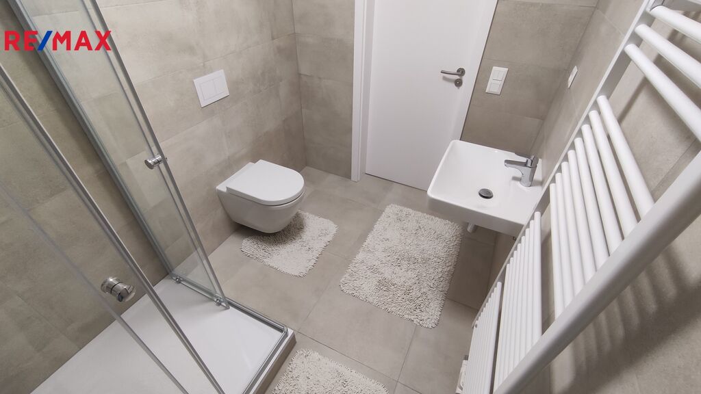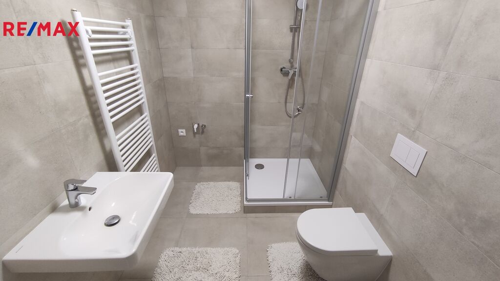 Byt je zcela nový a nebyl tedy doposud nikým užíván. Je vybaven kuchyňskou linkou s el. troubou, digestoří, indukční varnou deskou, sprchovým koutem, umyvadlem, prostorem pro pračku a sušičku a WC. Dále byt disponuje dvěma neprůchozími pokoji a prostornou chodbou. Vytápění a ohřev vody je centrální dálkový a energetická náročnost budovy je B, úsporná. Elektřina se převádí na nájemníky.