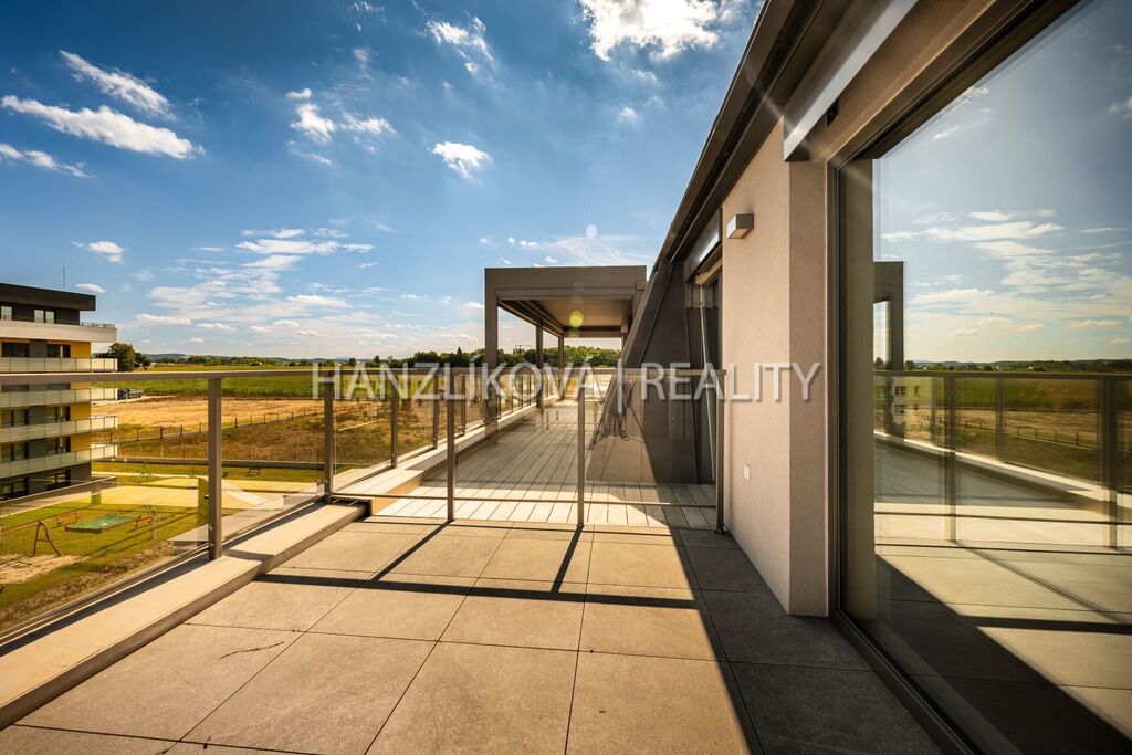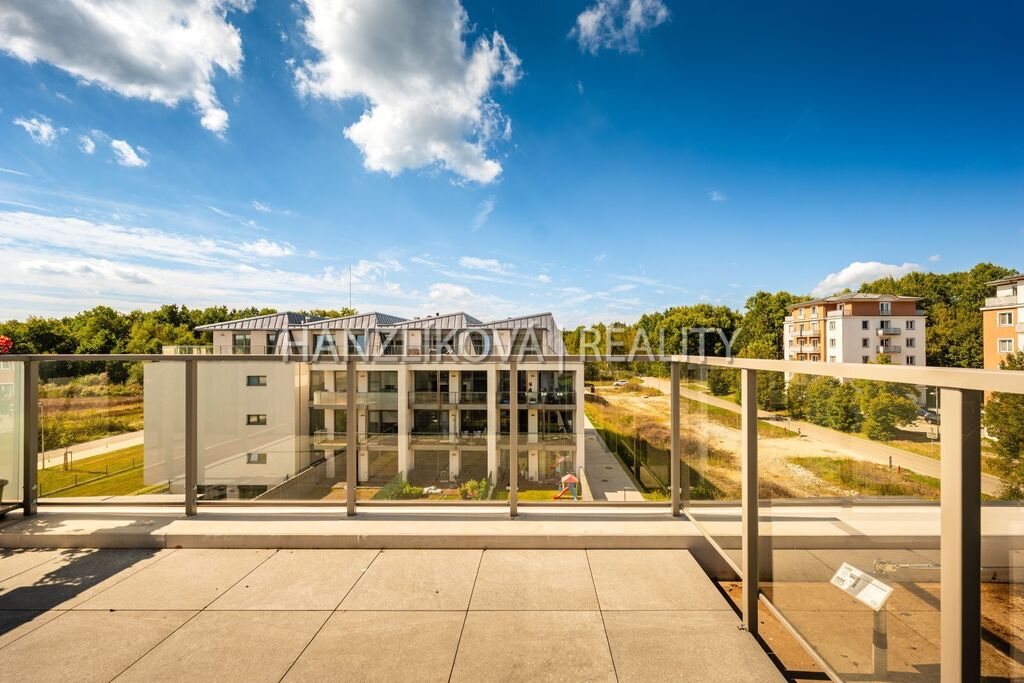 Nabízíme k pronájmu nadstandardní bytovou jednotku C.P.3 - byt 3+kk se dvěma terasami nacházející se ve 4. NP ( posledním patře) v nově postaveném bytovém domě "terasy Branišovská". Bytová jednotka se nachází ve třetím - posledním patře ( 4. NP) a skládá se z těchto místností : vstupní hala s o výměře 9,2m2, koupelna s toaletou o výměře 5,5 m2, obývací pokoj s částečně odděleným kuchyňským koutem o výměře 25,2m2, pokoj 16,6 m2, pokoj 10,3 m2. Byt má dvě terasy, každou o výměře 9,8 m2, přičemž jedna je přístupná z obývacího pokoje a je orientovaná na západ, druhá je přístupná z ložnice a je orientovaná na východ. Byt je částečně vybaven - kuchyňská linka včetně spotřebičů od firmy Hanák, předsíňová stěna, osvětlení, vybavení koupelny.