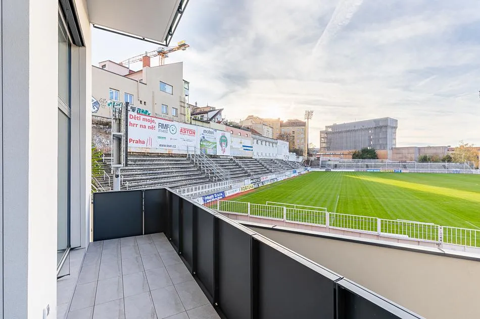 Studio 1+kitchen with an area of 67 m2 with a spacious balcony of almost 10 m2 and a cellar of 4 m2 in the popular location of Žižkov. The exceptional two-floor space is directed to U Viktorie Street, with a view of the green area of the Viktoria Žižkov football stadium.