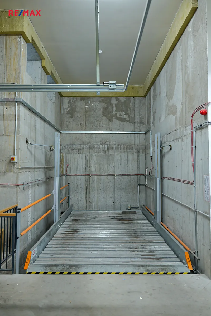 Součástí prodeje je také vlastní parkovací místo umístěné v suterénu domu ve vertikálním parkovacím systému, který šetří místo a nabízí pohodlné parkování v centru města.