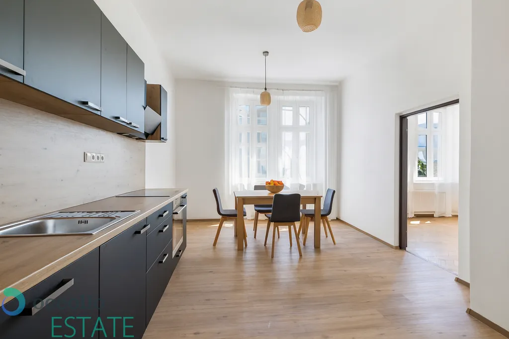 Byt prošel částečnou rekonstrukcí, která zahrnuje zejména novou kuchyňskou linku. Koupelna bude zrekonstruována na náklady prodávajícího dle vašeho přání, což Vám dává jedinečnou možnost získat byt s koupelnou přesně podle Vašich představ. S rozlohou 106 m² nabízí dostatek prostoru pro pohodlné bydlení. Dispozice bytu zahrnuje předsíň, prostornou kuchyni, obývací pokoj, 2 ložnice, koupelnu a samostatné WC.