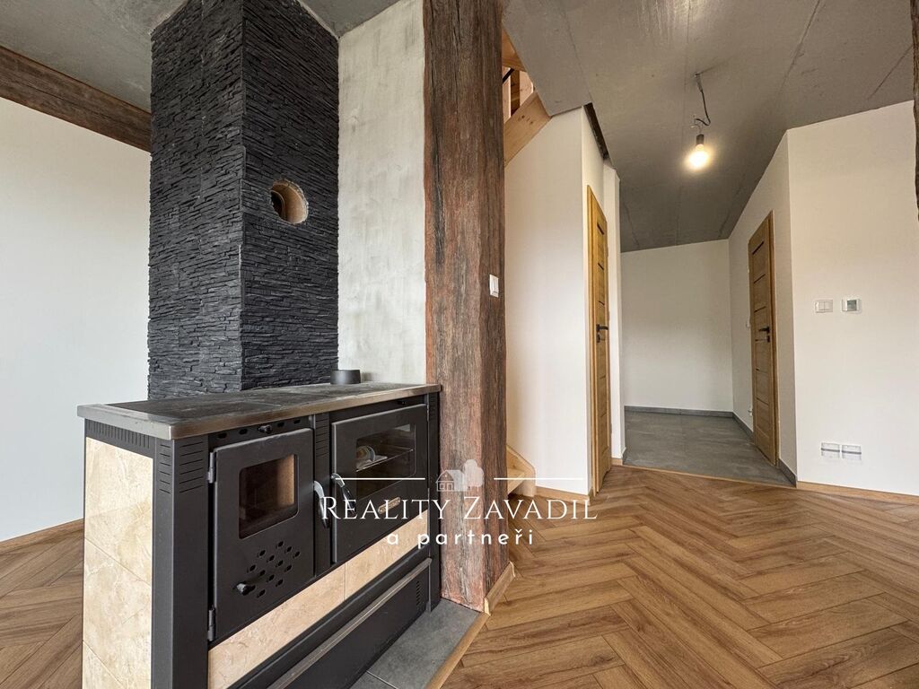 V prvním nadzemním podlaží je rovněž instalováno elektrické podlahové topení. Doplňkové vytápění zajišťuje sporák na tuhá paliva v suterénu a kvalitní krbová kamna značky Adler v prvním patře, která vytváří příjemnou atmosféru a slouží jako záložní zdroj tepla. Okna jsou od renomovaného slovenského výrobce Alfaplast s trojitým zasklením v prvním a druhém podlaží, což garantuje výbornou tepelnou i zvukovou izolaci. Střecha je pokryta plastovým šindelem v antracitové barvě a zateplena 35 cm foukané izolace, což zajišťuje minimální tepelné ztráty.