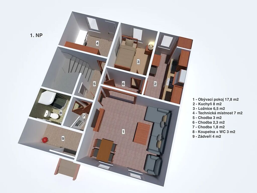 - Dům má dva samostatné vstupy – ideální pro dvougenerační bydlení nebo kombinaci bydlení a podnikání