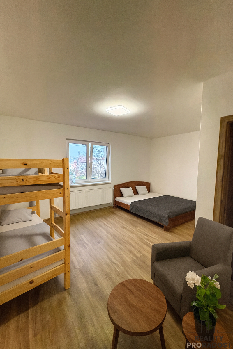 Nabízíme k prodeji novostavbu z r. 2024 v obci Zaječí, v malebné vinařské obci. Tato nemovitost skýtá ideální zázemí jak pro turisty, tak pro milovníky vína, anebo pro rodinné bydlení s podnikáním. Nemovitost poskytuje dostatek prostoru pro komfortní ubytování až pro 12 osob. Zastavěná plocha domu je 130 m2 + patro s apartmány + vinný sklep + zahrada. Samostatný přístup k úplně novým třem apartmánům, třem koupelnám a obývacímu pokoji 19m2 v patře přímo vybízí k podnikání s pronájmem, ale zároveň nabízí možnost pohodlného rodinného bydlení, poněvadž i v přízemí lze mít obývací pokoj s kuchyní. V patře - 1. pokoj 16 m2, 2. pokoj 17 m2 a 3. pokoj 20 m2. Přístup do patra poskytuje praktické a nenarušující soukromí pro obyvatele domu.