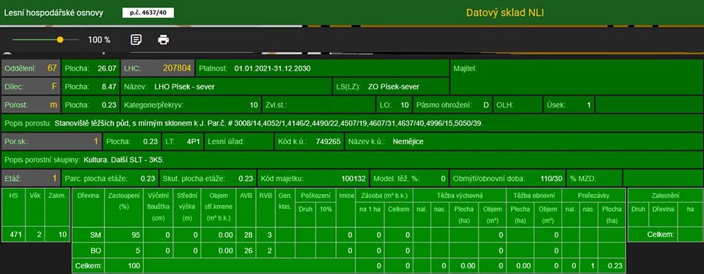 p.č. 4637/40 vedená jako lesní pozemek o celkové výměře 1 004 m2,