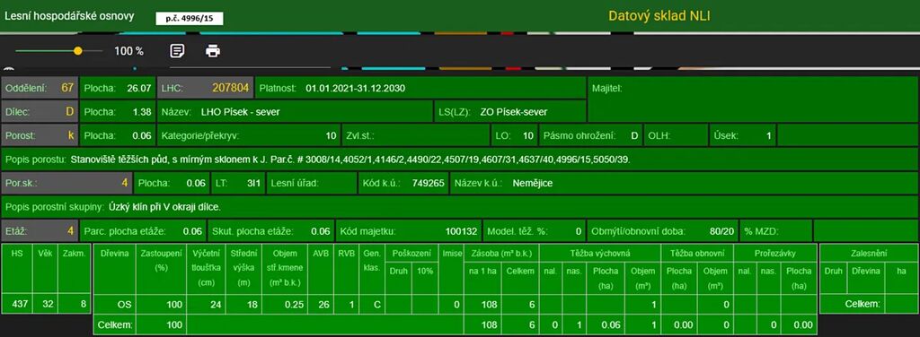 p.č. 4996/15 vedená jako lesní pozemek o celkové výměře 589 m2.