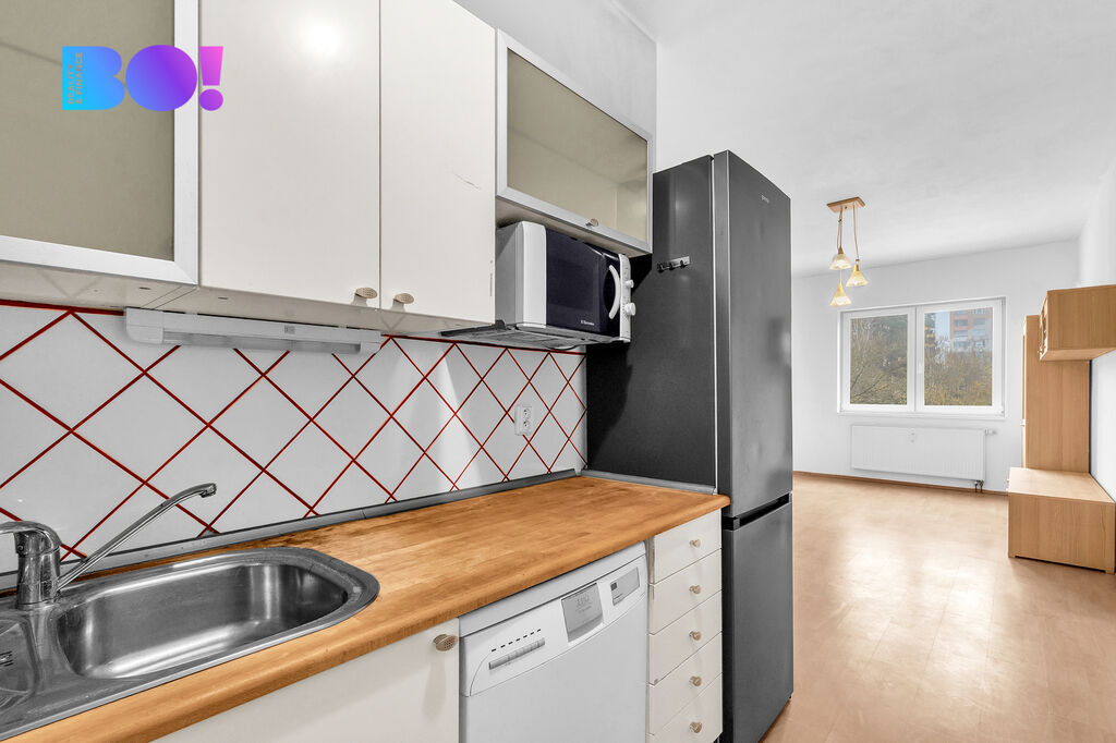 Dispozice bytu: vstupní chodba s vestavěnou skříní, obývací pokoj spojený s kuchyní, ložnice, koupelna se sprchovým koutem a WC.