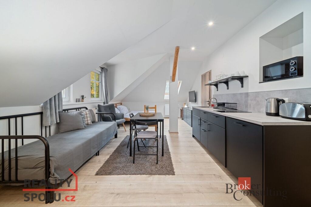 Nabízíme k prodeji útulný a slunný ateliér s dispozicí 2+KK, který se nachází ve 3. NP kompletně zrekonstruovaného cihlového domu (rekonstrukce 2022). Užitná plocha 44 m2 nabízí efektivní rozdělení prostoru pro odpočinek i společné chvíle.
