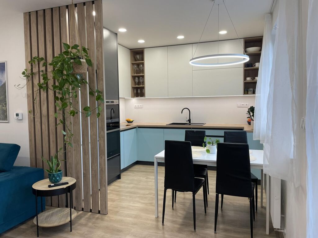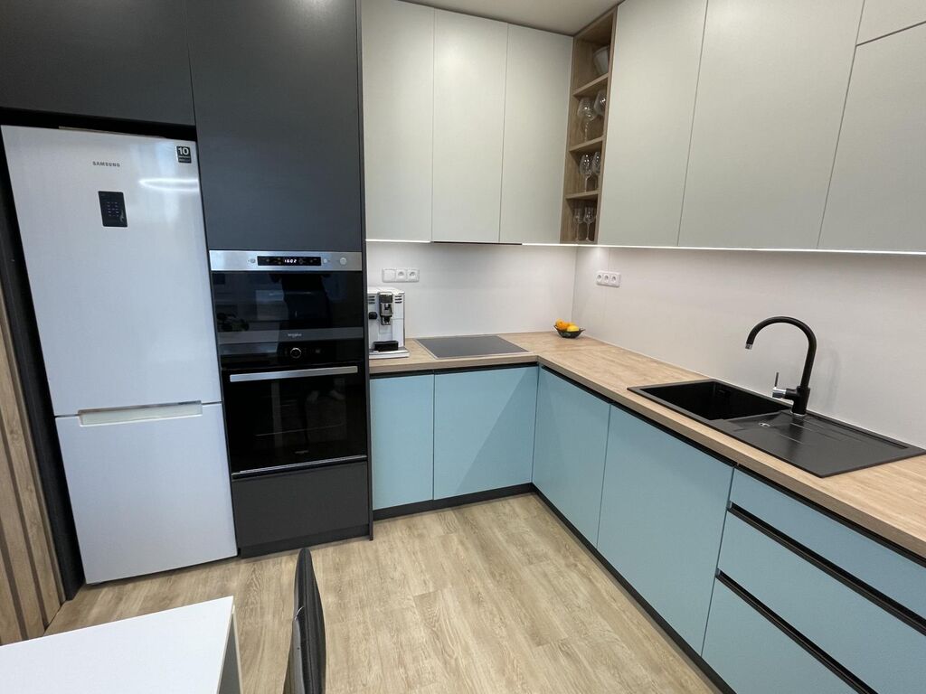 Vybavení a standard: Byt je vybaven kuchyňskou linkou zhotovenou na míru s kompletní sadou vestavných spotřebičů - indukční varná deska a digestoř s technologií Hob2Hood (bezdrátové propojení varné desky s odsavačem par. Začněte vařit a odsavač sám automaticky přizpůsobí intenzitu odsávání podle výkonu varné desky), elektrická a mikrovlnná trouba, myčka nádobí. Vše je necelé 2 roky nové. V zádveří jsou umístěny na míru vyrobené vestavěné skříně a kompletní nábytek v bytě je realizován na zakázku.