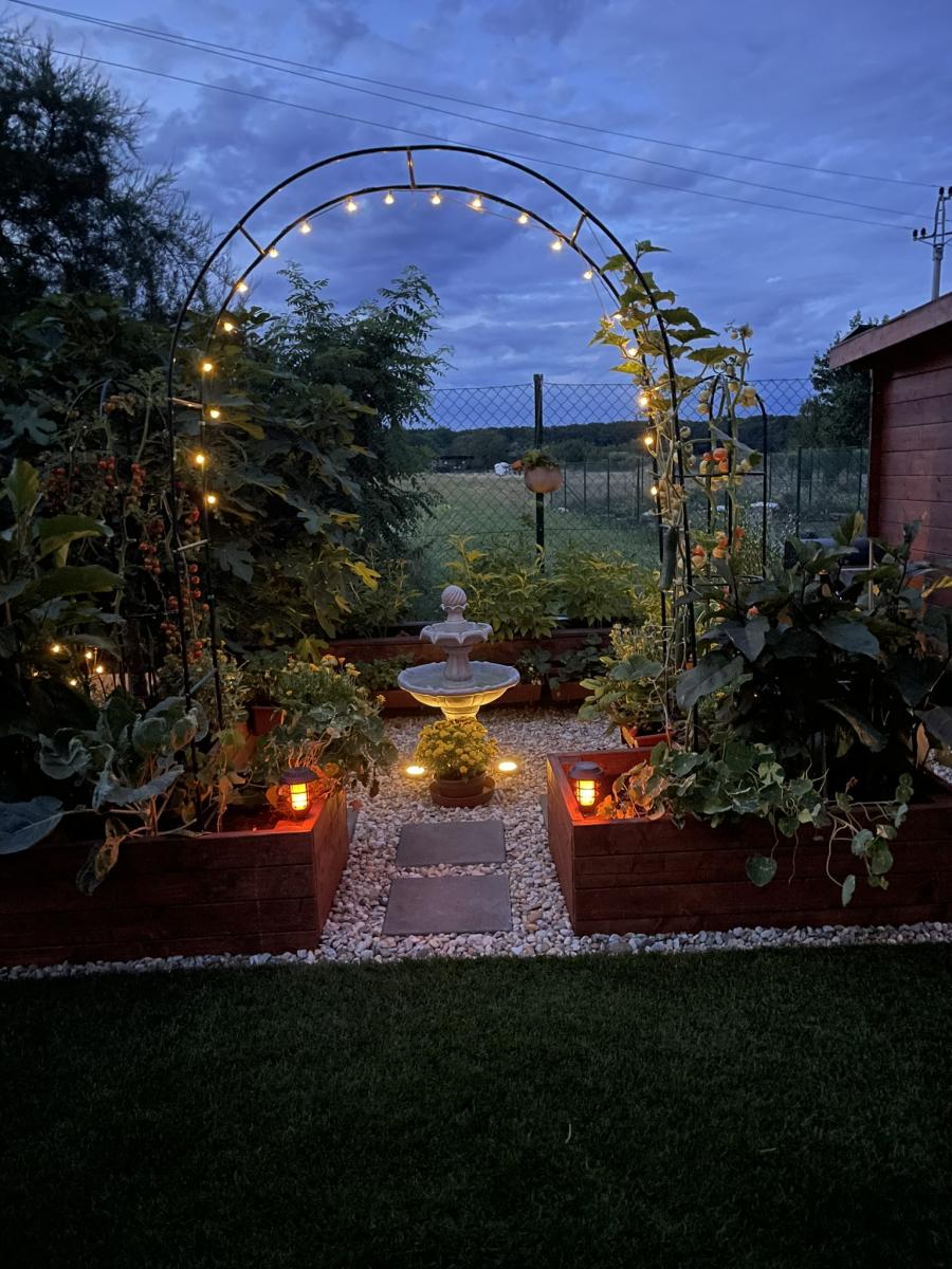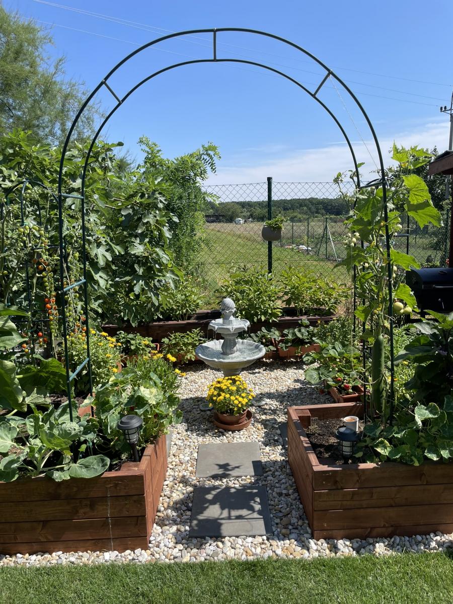 - Záhony pro pěstování zeleniny, borůvek a malin.