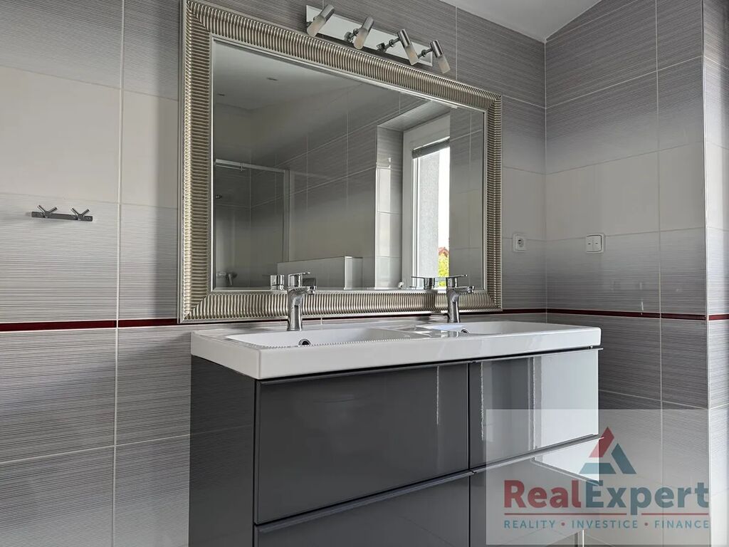 Nabízíme k pronájmu hezký rodinný dům o dispozici 5+kk + 2garáž v obci Šestajovice, ul. Křižovnická, okr. Praha východ. Celková užitná plocha domu činí 180 m2 a pozemek má výměru 665 m2. Zahrada u domu je částečně zpevněná a využitelná pro parkování vozidel a z části jako relaxační prostor za domem. V přízemí domu se nachází předsíň s vestavěnými skříněmi, obývací pokoj s kuchyňským koutem a zimní zahradou. Kuchyň je vybavena kuchynskou linkou s vestavnými spotřebiči (vaná deska, trouba, mirkovlnka, digestoř, lednice). V garáži je kuchyňská linka a za garáží technická místnost na kola a zahradní věci. V přízemí se dále nachází koupelna se sprchovým koutem. Ložnice s horním úložným prostorem, technická místnost, WC s umyvadlem a prostorem pro pračku a sušičku. V patře jsou 3 pokoje, koupelna s vanou, sprchou a WC. Na podlahách je marmoleum a dlažba. Vytápění je centrální plynové. V domě je alarm, bezpečnostní rolety a klimatizace. Při uzavaření nájemní slouvy je vyžadována pronajímatelem vratná kauce - jistota ve výši 2 měsíčních nájmů. Zajímavá příležitost. Doporučujeme.