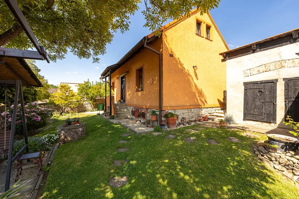 Prostor před domem nabízí příjemné posezení pod velkým ořechem a úžasný výhled.
