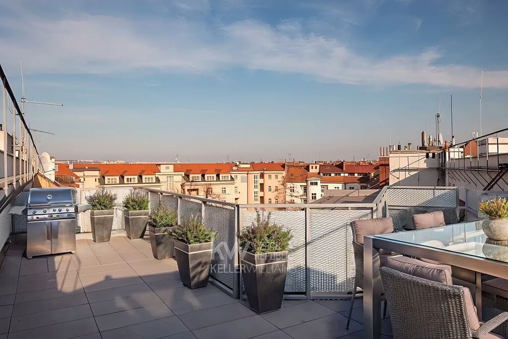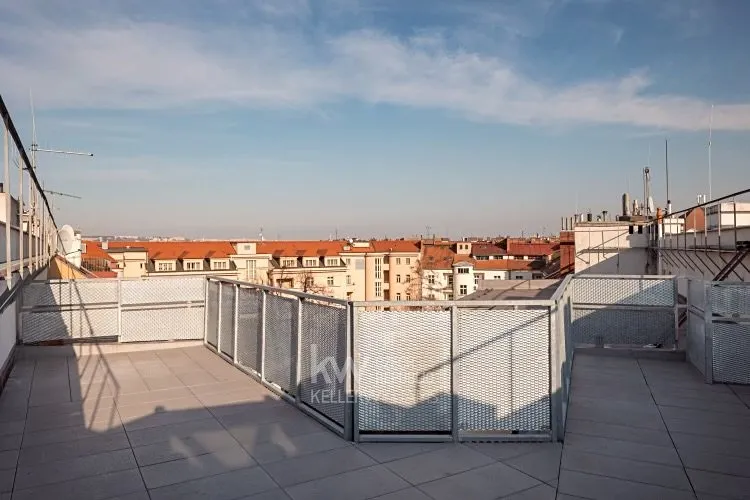 terasu o rozloze 51 m² s výhledem na Pražský hrad a možností vybudování wellness zóny.