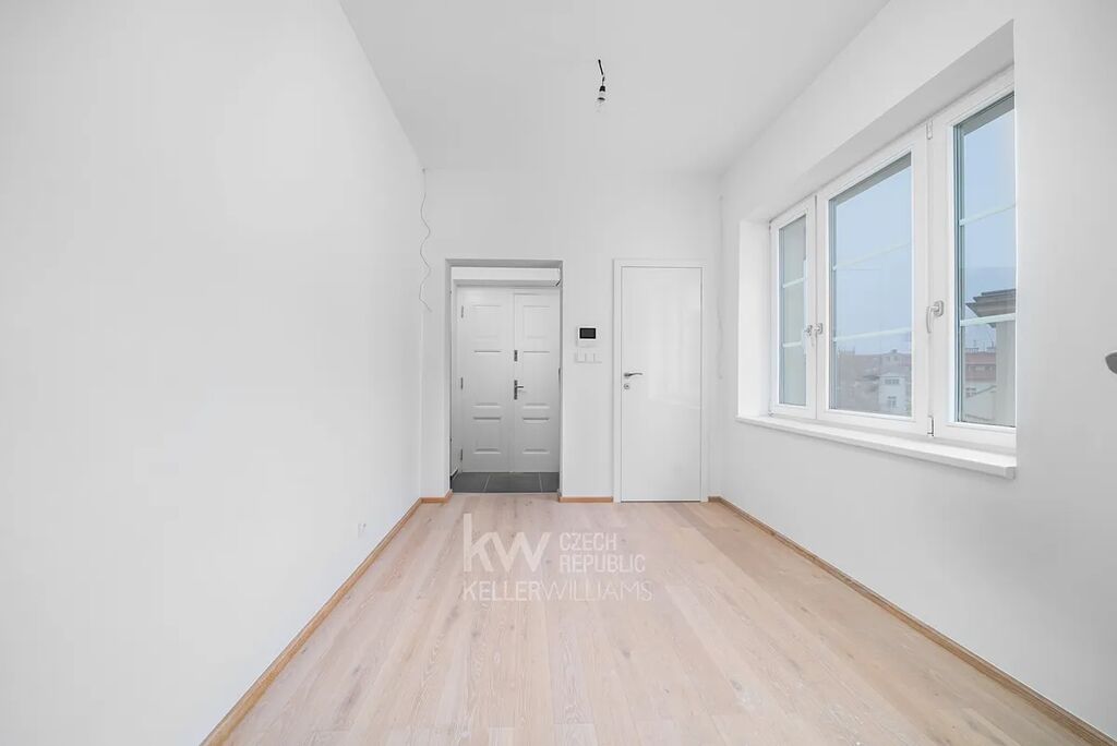 bytu. Posuvnými dveřmi se odtud dostanete do hlavní ložnice s vlastní koupelnou,
