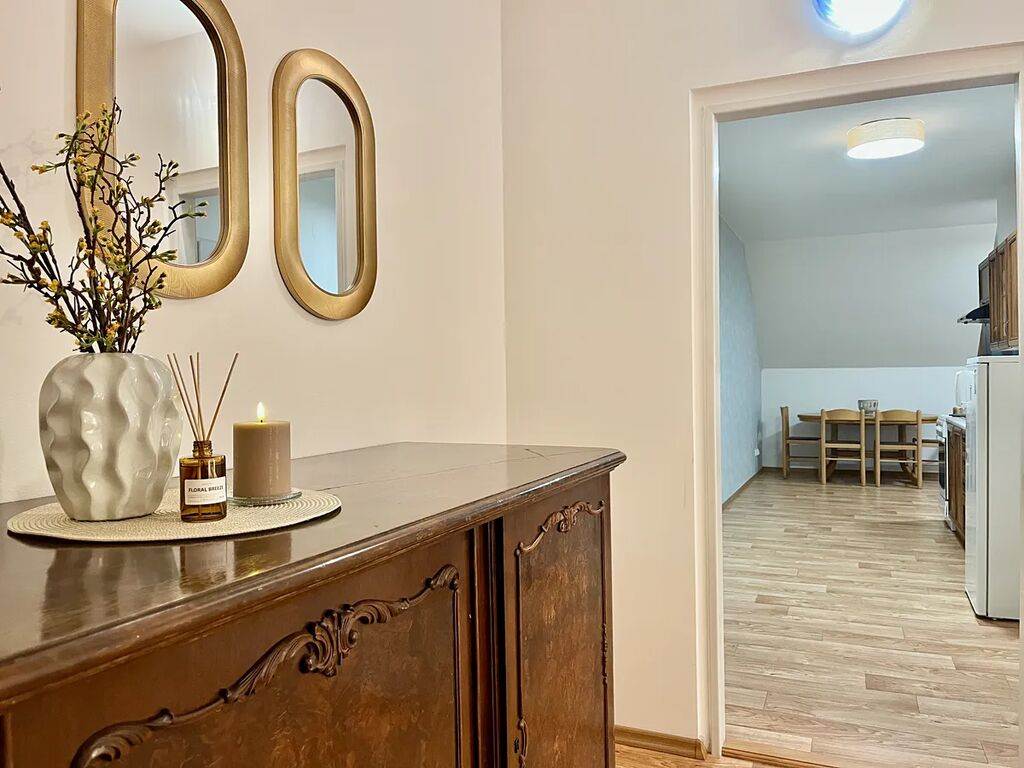 Byt je dispozičně řešen jako vstupní předsíň, koupelna s vanou, přípojkou na pračku a toaletou, obytná kuchyň s oknem orientovaným do ulice a ložnice s oknem do vnitrobloku. Příslušenstvím bytu je parkovací stání, sklep a sdílené užívání lyžárny a kolárny.