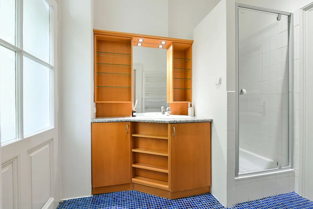 Dolní podlaží nabízí chodbu, druhou ložnici s vlastní koupelnou vybavenou vanou a toaletou.