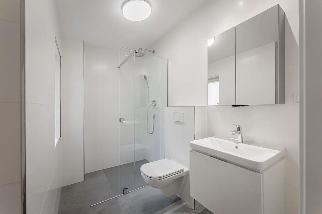 Horní patro dispozičně nabízí hlavní ložnici (20,36 m2) s ensuite koupelnou (4,19 m2), která je vybavena sprchovým koutem, umyvadlem a toaletou. Další ložnici (17,31 m2) též s ensuite koupelnou (3,74 m2), jež nabízí sprchový kout, umyvadlo a toaletu.